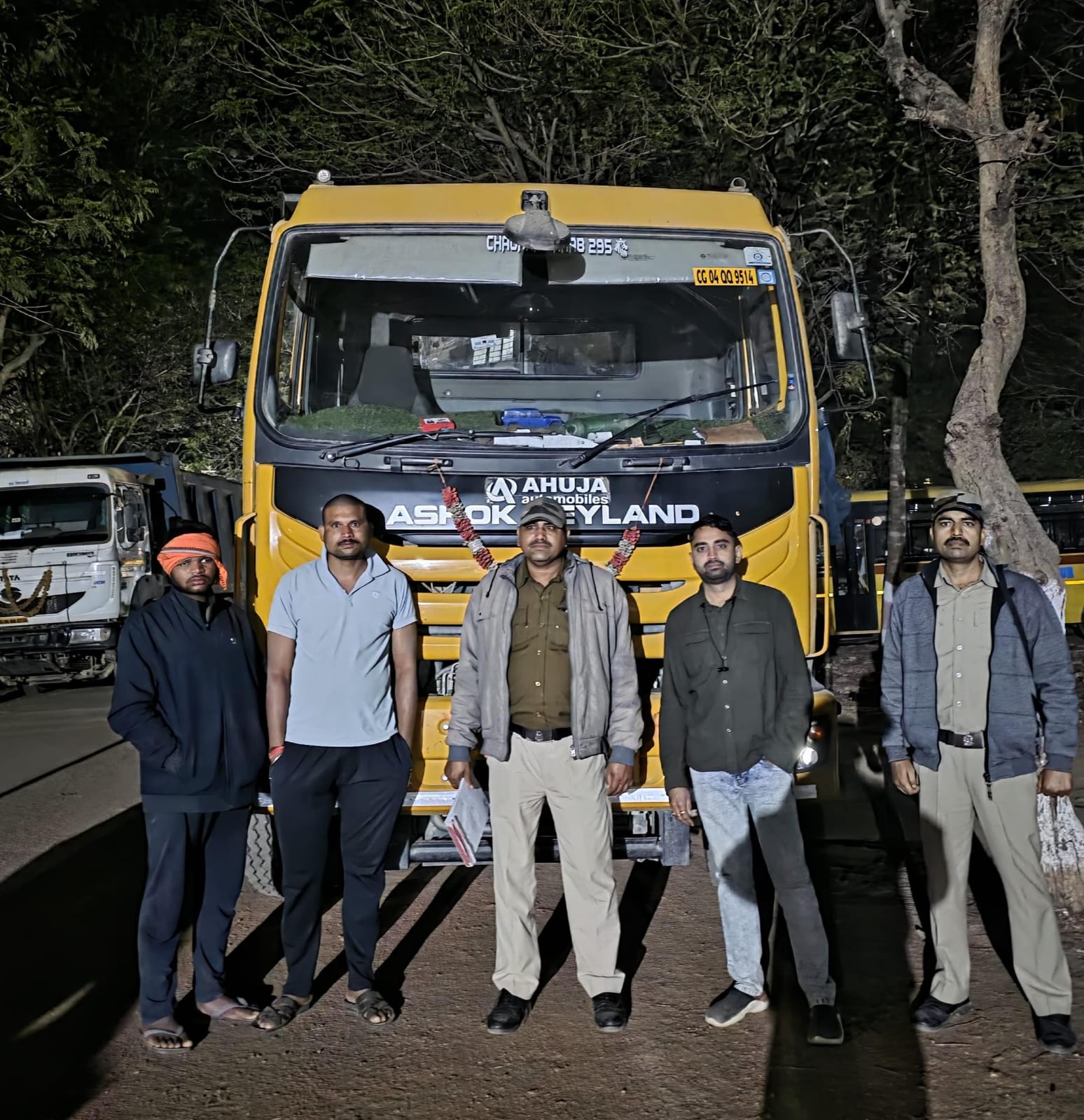 बिलाईगढ़ : खनिज अधिकारी बजरंग पैकरा के मार्गदर्शन में, संचार माध्यम से प्राप्त सूचना पर खनिज अमला द्वारा जिला अंतर्गत खनिजों के खनन परिवहन एवं भण्डारण के रोकथाम हेतु समय- समय पर आकस्मिक निरीक्षण किया जा रहा है। शुक्रवार को खनिज अमला द्वारा भटगांव तहसील क्षेत्र अंतर्गत गौण खनिज परिवहन में संलिप्त 02 वाहन (हाईवा) पर कार्यवाही करते हुए थाना भटगांव के सुपुर्द किया गया। इसी प्रकार शनिवार को सारंगढ़ तहसील क्षेत्र अंतर्गत गौण खनिज के अवैध परिवहन 02 वाहन (हाईवा) पर कार्यवाही करते हुए थाना सारंगढ़ में सुपुर्द किया गया। यह कार्यवाही खनिज नियम 2015 एवं अधिनियम 1957 की धारा 21 के तहत की गई।
