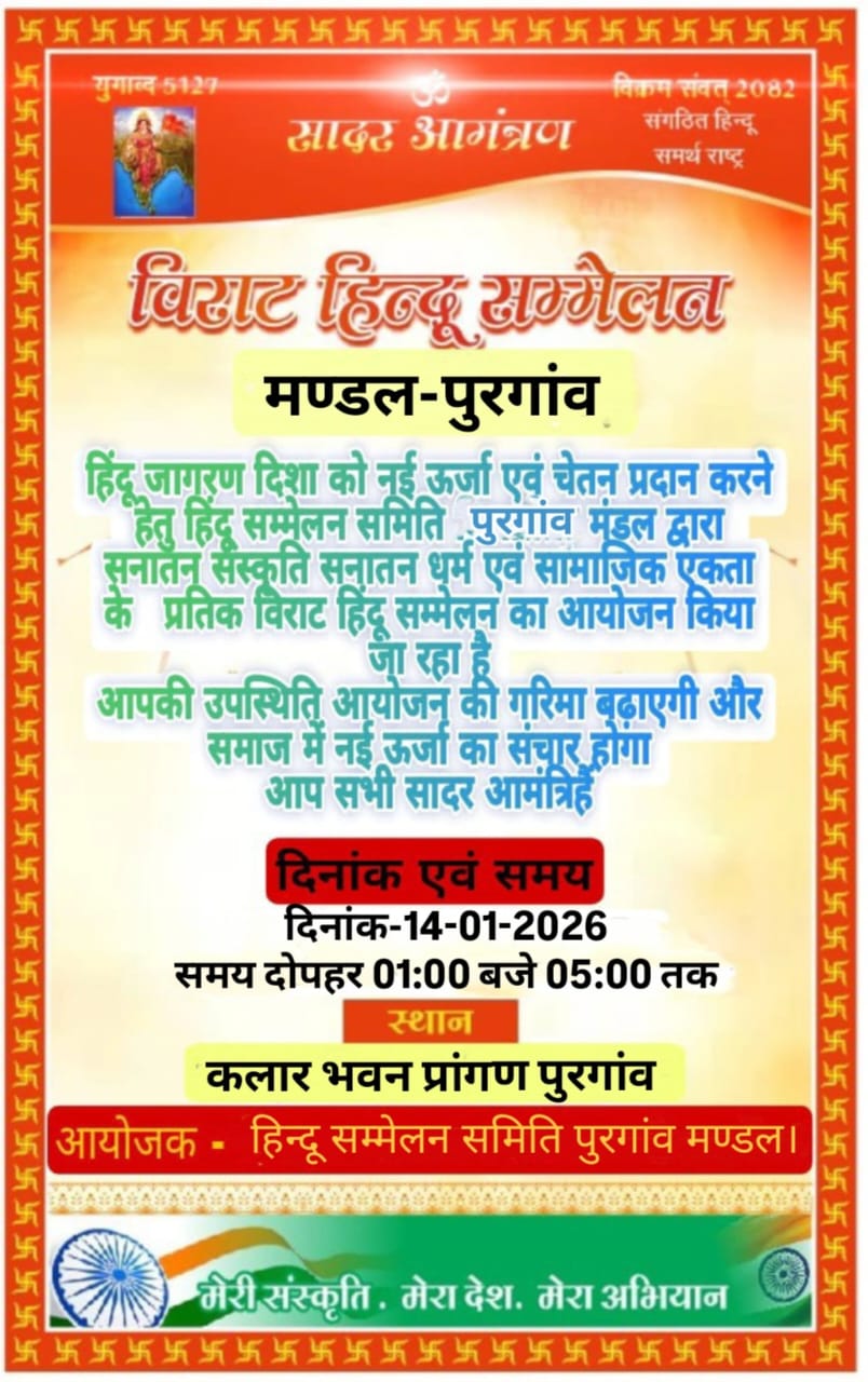 पुरगांव में 14 को विराट हिन्दू सम्मेलन का आयोजन…