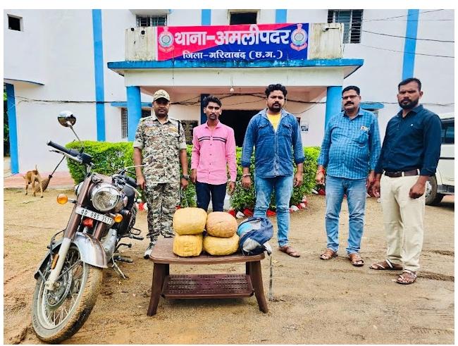 अमलीपदर : नया सवेरा अभियान के तहत वरिष्ठ अधिकारियों के निर्देश पर अमलीपदर पुलिस अवैध गतिविधियों गांजा, जुआ और शराब पर लगातार शिकंजा कस रही है। इसी क्रम में थाना प्रभारी को एक मुखबिर से सूचना मिली कि दो अज्ञात व्यक्ति एक मोटरसाइकिल से अवैध रूप से गांजा परिवहन कर रहे हैं।