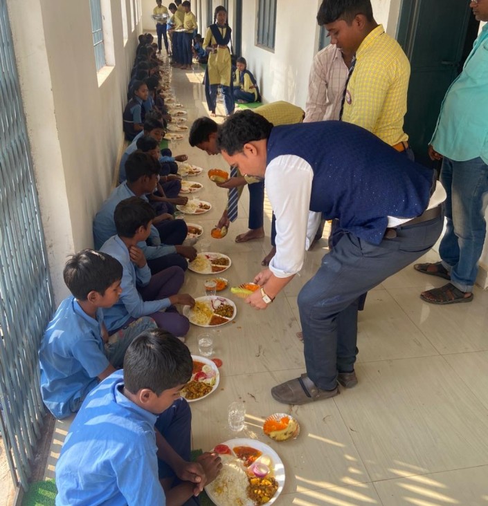 बिलाईगढ़ : शासन के योजना के अनुसार प्रत्येक बच्चे को पोषण की उपलब्धता सुनिश्चित करने के उद्देश्य से प्रत्येक विद्यालय में न्योता भोजन कराने की योजना है। जिसमें शिक्षक, पालक या समाज का कोई व्यक्ति अपने विद्यालय या समीपस्थ विद्यालय में जन्म दिन, विवाह या किसी अन्य शुभ अवसर पर न्योता भोजन करा सकता है। इसी तारतम्य में नव वर्ष के शुभ अवसर पर शासकीय पूर्व माध्यमिक एवं हाई स्कूल सलिहाघाट के समस्त बच्चों को न्योता भोजन कराया गया। पौष्टिक भोजन के साथ फल, मिठाई का भी वितरण किया गया।