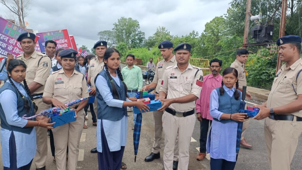 छात्रों ने तख्ता लेकर निकाली रैली, बाइक सवार हेलमेट के लिए जागरूक करते रहे : मंचीय आयोजन के बाद मौजूद भीड़ रैली के शक्ल में तब्दील हो गई। 100 से ज्यादा स्कूली छात्र यातायात जागरूकता के लिए तख्त लेकर निकले थे। पीछे पीछे बाइक सवार भी थे जिन्होंने हेलमेट पहन कर , इसका नियमित उपयोग का संदेश दे रहे थे। थाना गेट, बस स्टेंड, गांधी चौक में तैनात पुलिस जवानों को छात्रों और जनप्रतिनिधियों के हाथों छाता मिठाई और गिफ्ट देकर सम्मानित किया गया। उन्हें समर्पित सेवा भाव के लिए साधुवाद किया।पूर्व विधायक पुजारी ने बूंदा बांदी से बचाने छाता ओढ़ा कर थाना प्रभारी फैजुल शाह को भी सम्मानित किया ।