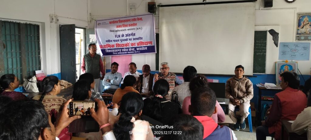 कसडोल : नवीन पाठ पुस्तक पर आधारित प्रशिक्षण का प्रारंभ 15 दिसंबर 2025 से 3 जोन में किया जा रहा है प्रथम जोन का कसडोल, दूसरा जोन सोनाखान और तीसरा जोन कोटियाडीह विकासखंड कसडोल कि समस्त प्राथमिक शालाओं के शिक्षकों का नवीन प्रशिक्षण पर आधारित पांच दिवसीय प्रशिक्षण आयोजित किया जा रहा है विकासखंड के शिक्षा अधिकारी अरविंद ध्रूव, स्रोत समन्वयक नील मनी साहू सर के द्वारा किया गया प्रशिक्षण आरंभ का उद्देश्य और कार्यक्रम के विषय पर प्रकाश डालते हुए बताया गया है कि NEP 2020 के अनुपालन में निर्मित NCF के आधार पर एनसीईआरटी के द्वारा की गई है पाठ्य पुस्तक को राज्य के संदर्भ में अनुकूलित करते हुए इसी सत्र 2025-26 में राज्य के समक्ष प्राथमिक शाला में लागू किया जा रहा है तथा शिक्षकों को इन नवीन पाठ पुस्तक के संदर्भ में उसके शिक्षक उपागम और कक्षा में उसके बेहतर उपयोग के संबंध में जानकारी देने व करके सीखने के उद्देश्य से यह प्रशिक्षण आयोजित किया जा रहा है ।